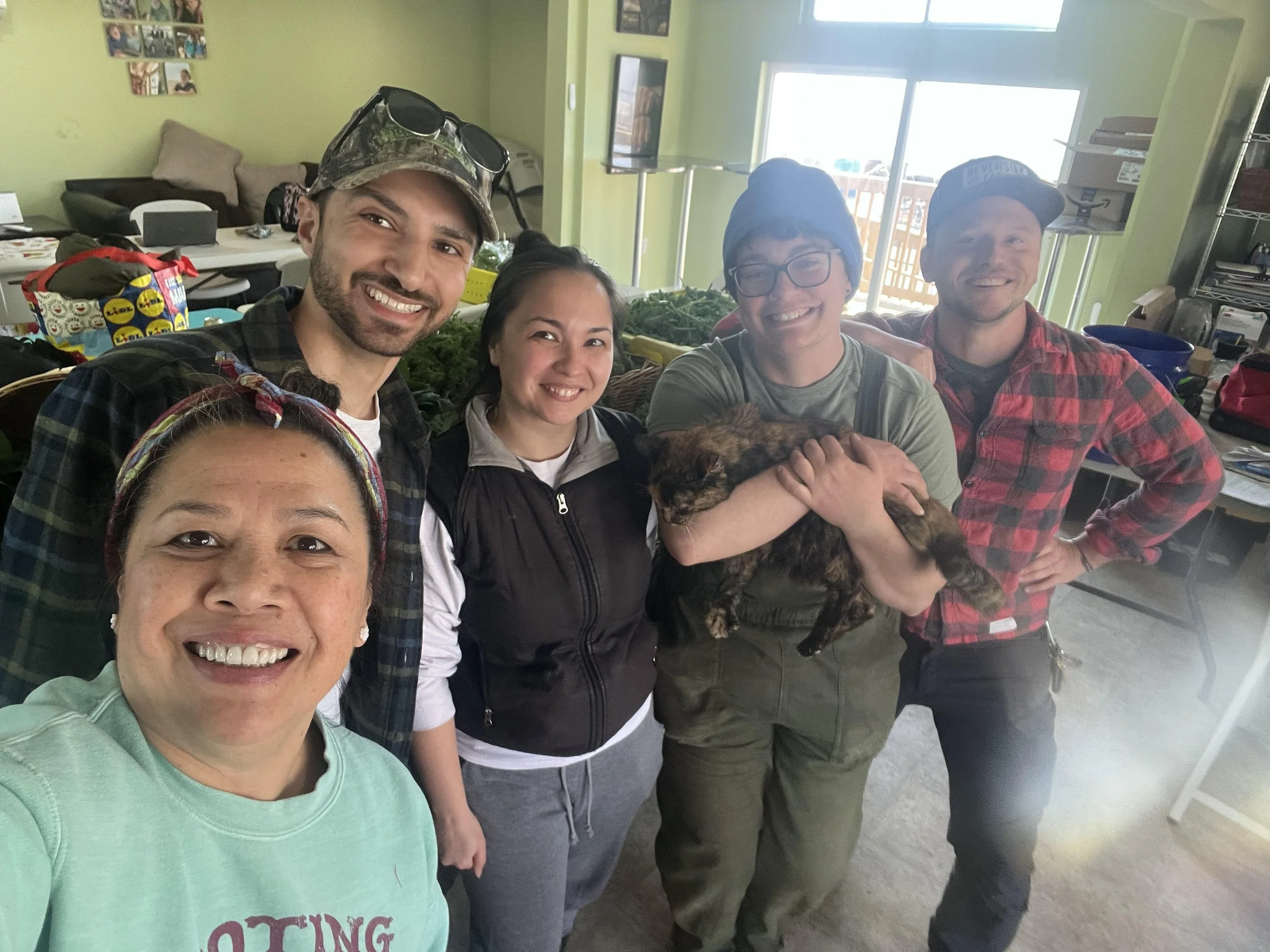 I had a short interview today with a farmers market manager as part of their application process (more on that later). She asked me about how I started farming, and I thought I’d share what we talked about here too. After graduating from college, I went to work as a Chesapeake Conservation Corp. Member (think Americorp but for Maryland) at ECO City Farms in Prince George’s County. The farm is an urban vegetable farm with 1.5 acres right in the middle of the suburbs. With over 10 years in operation and strong educational programs for future farmers, if you are involved in Maryland's small-scale farming community, you probably know ECO already. I worked there for a year, learning everything about vegetable production from seeding to selling. I wonder if I did not have a good first farm experience with experienced and caring mentors, if I would’ve kept going. The first photo above is from a recent visit with Kayla Agonoy (middle), the Deputy Director and one of my mentors, and Farm Manager Maddie (holding Rosie the farm cat), who started at ECO the same time I did. I don’t have many photos from when I worked there because I didn’t really like taking photos— I still kind of don’t. Since then, I managed Common Root Farm, which is literally down the street from me, and I volunteered at a few more farms here and there, but I’ll always remember where it all started.