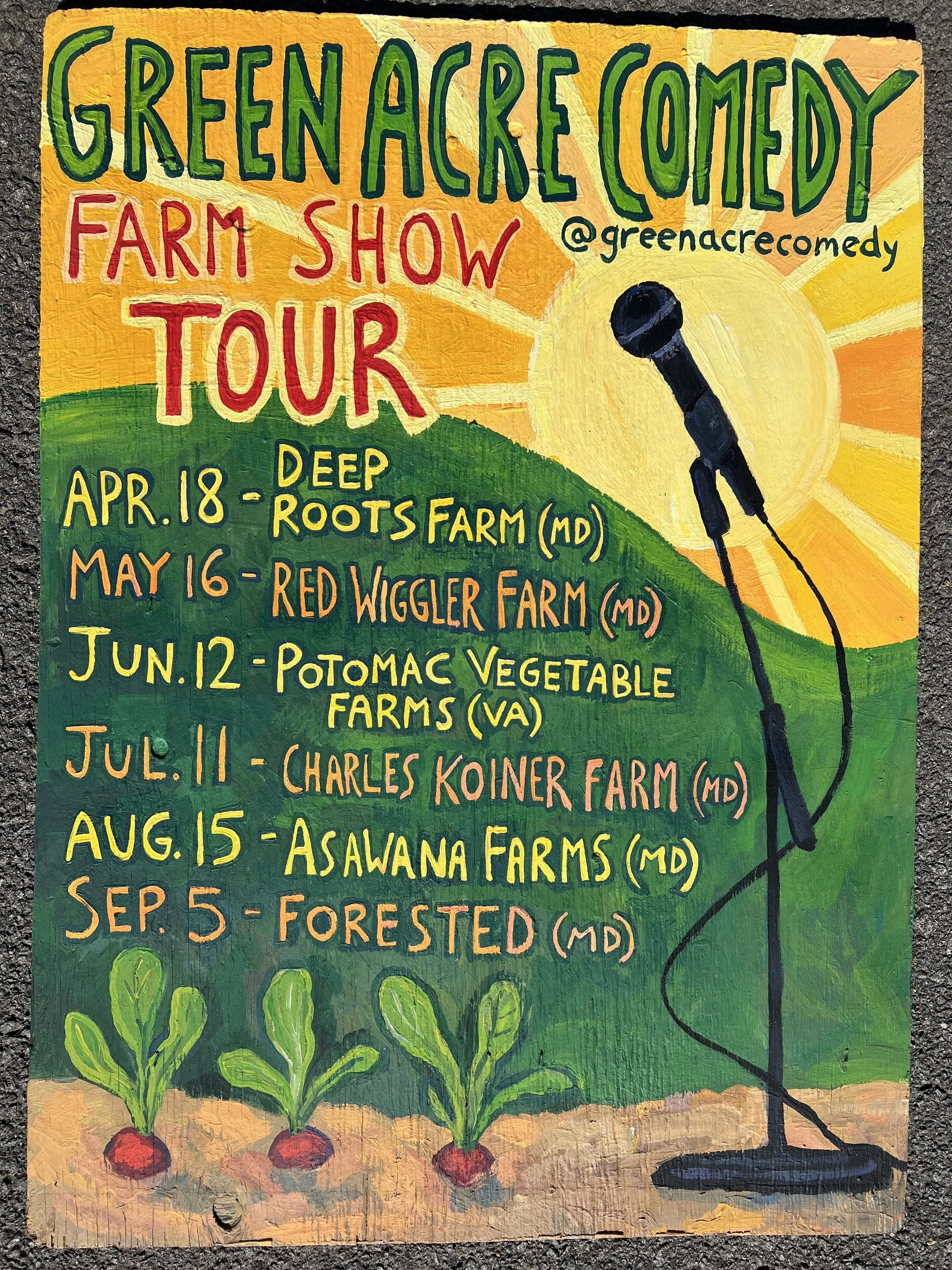 Not only is Humon a farmer but he is also a stand up comedian. He is the lead producer for Green Acre Comedy (GAC). By combining his two passions of farming and standup comedy, he has created a new way to enjoy live comedy— on a farm! The mission of GAC is to connect people with their local food systems through stand up comedy shows on local farmers. Every year GAC produces a series of shows (indoors and outdoors) during the Spring and Summer at farms in the DMV.